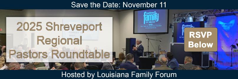 Please join LFF President, Gene Mills and the LFF Team for the 2025 Shreveport Regional Pastors Roundtable. Our hope is to engage with area pastors and lawmakers to impact our great State of Louisiana.