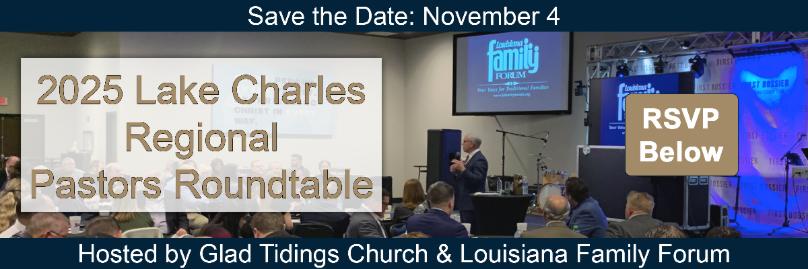 Join LFF President, Gene Mills and the LFF Team for the 2025 Lake Charles Regional Pastors Roundtable, to engage with area lawmakers to make an impact in 2025.